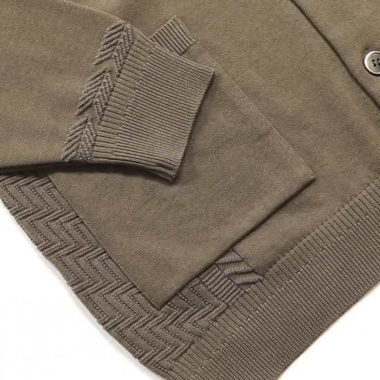 プレーティング編みと言われる表目側と裏目側で異なる糸を編む技法を使用し、表にうっすらと見える裏の糸で奥行きのある表情に仕上げました。